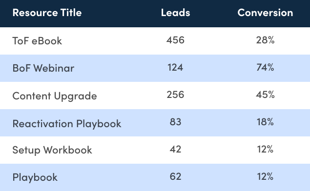 See who downloads each resource and learn which resources are performing best. Make updates to improve conversion rates and resource visibility.